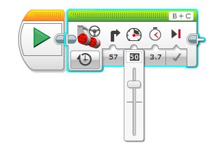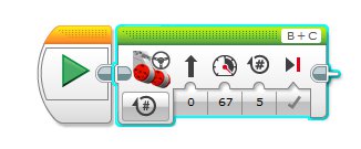 This block I have set up to drive straight ahead, 67% power, for 5 rotations and the Brake at the end. The motors are connected to Ports B and C.