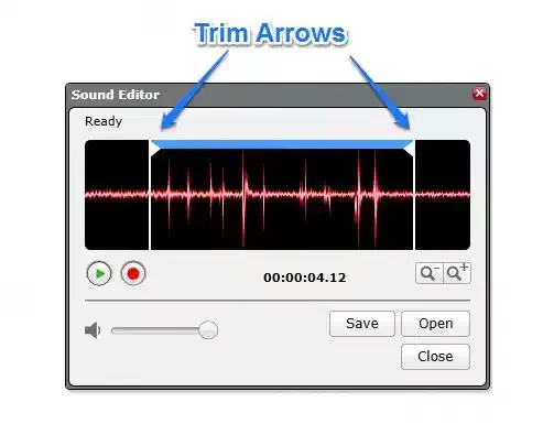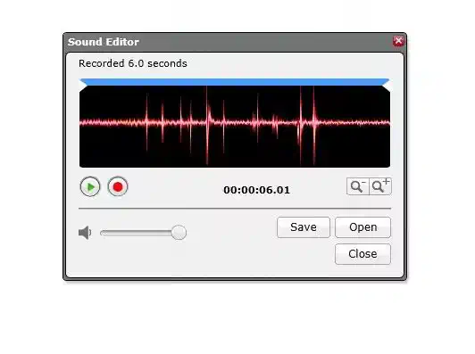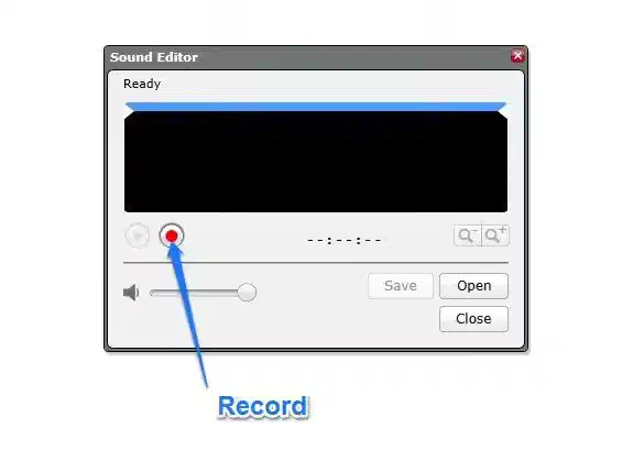 There are several parts to the Sound Editor, the most important being the ‘Record’ button.