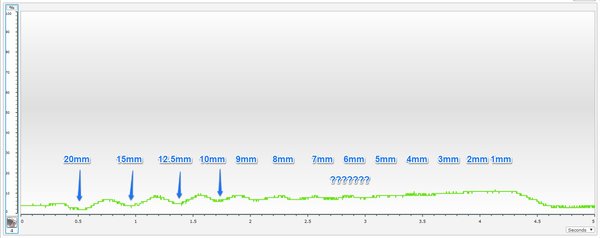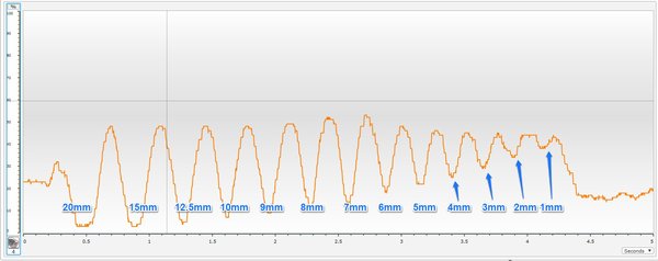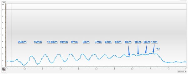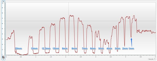 I would say that the robot could ‘see’ up to the 5mm line. It’s iffy though and while our human eyes can discern the pattern from the graph, for 5mm, the robot is looking for a drop of 3 percentage points.