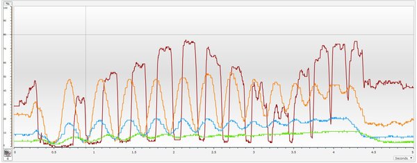 PS. Here is all the data on one graph. The lines don’t line up because, as much as I tried, I couldn’t get the exact same starting position each time. If I did it again, I might setup a starting “trigger” to make sure they all line up together.
