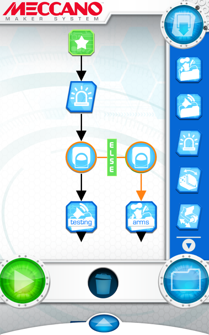 The last way is via the App. With this app, you are given a virtual Robot on your smart phone/tablet that you can manipulate by dragging the arms/head/feet around. Similar to the LIM system, it’ll remember this and play back when you need it.Something I did stumble across (but not through any info on the official Meccano website) is a new feature called Behaviour Builder. This has a lot more appeal for me as it implied you could string together different behaviours, and have them triggered on different inputs etc. This would be a great way to start teaching kids about the fundamentals of programming, namely Sequence, Selection and Iteration.