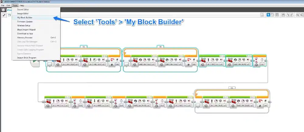 You’ll now see all those blocks have disappeared and have been replaced by a single My Block that you have just created. If you want to edit anything inside this My Block, double click on the block and it will open up a separate Program within your Project with just the blocks associated with the My Block.