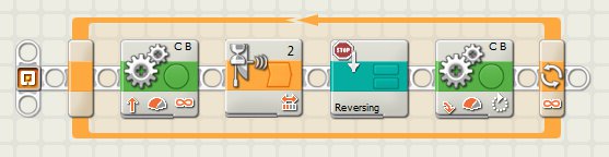I then turn the whole thing into a MyBlock, so I can use it whenever I want. This program will have the robot drive up to an obstacle, run the reversing block, turn a bit and then go driving to find the next obstacle.