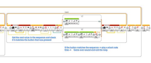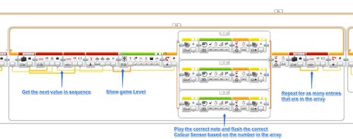 I then show on the EV3 screen the length of the array to let the Player know what level they’re up to. If the array/sequence is 5 actions long, then they are on Level 5.