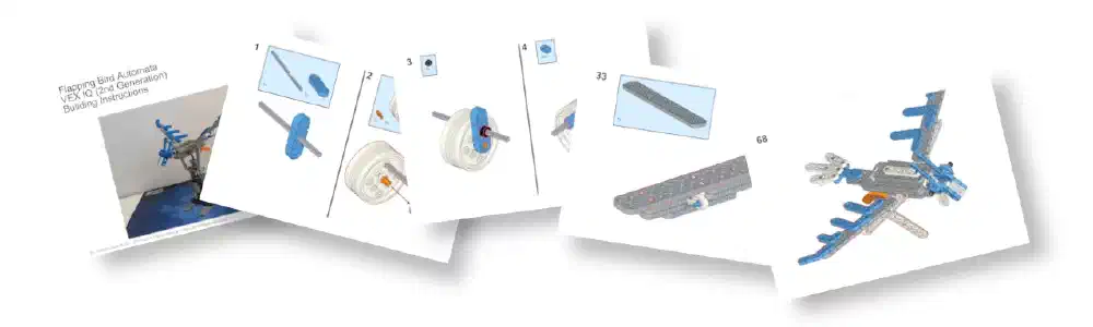 Built using a single VEX IQ 2nd Generation Kit, this project works well as a classroom build, a club challenge, or a design inspiration task where students modify the flying creature or invent their own moving automata.